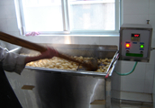 該機是在傳統(tǒng)電炸鍋基礎(chǔ)上添加油水分離機構(gòu)和安裝了蒸汽加
